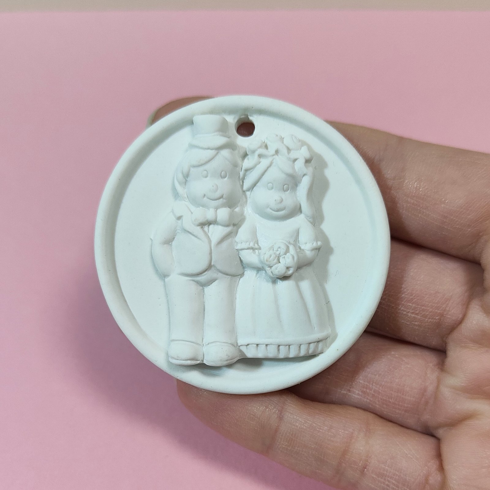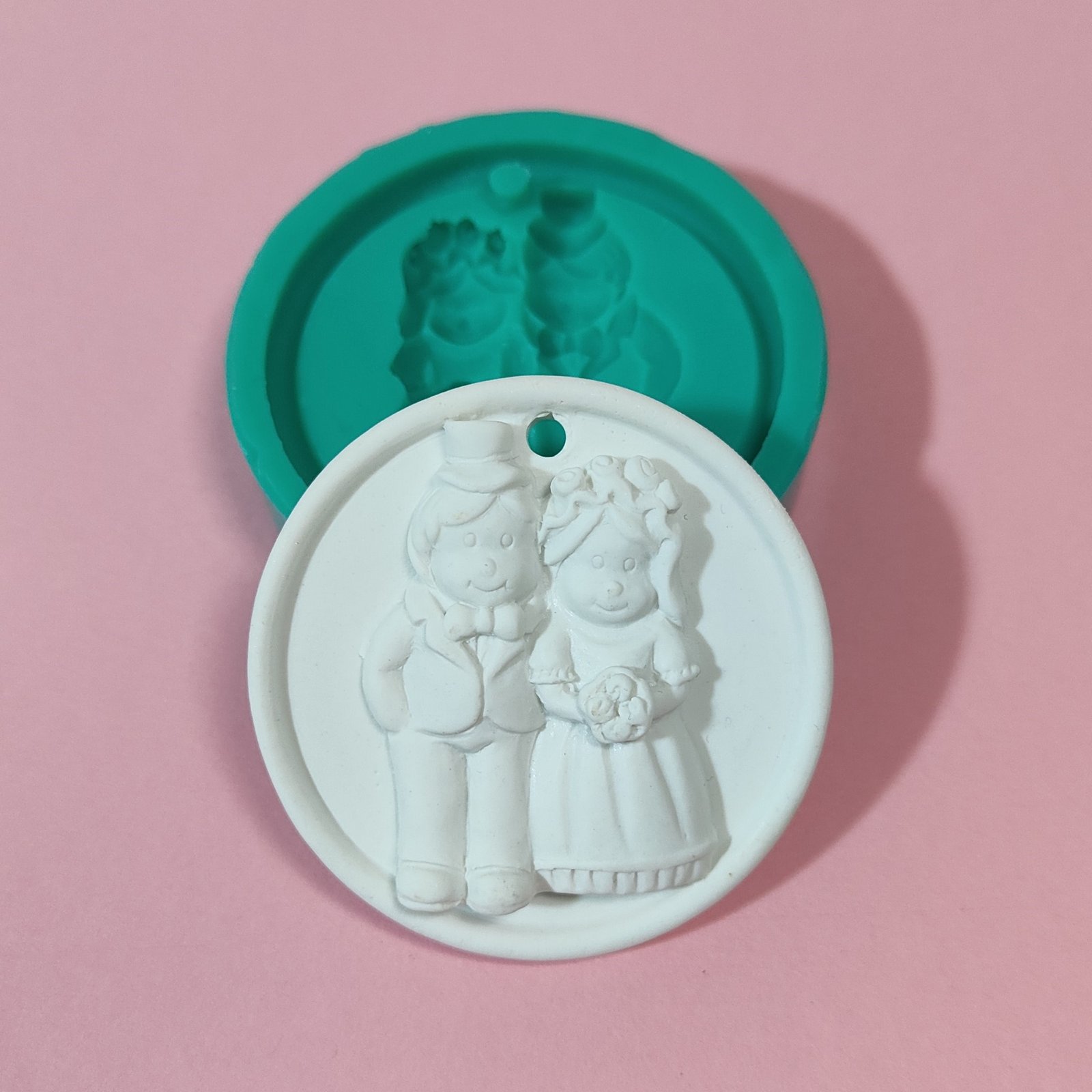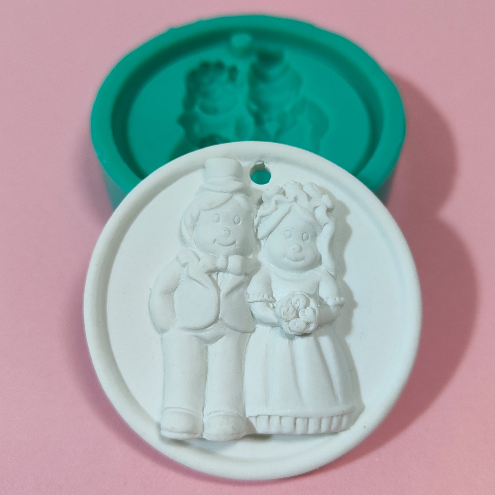 Stampo Coppia Di Sposi medaglione in silicone per creazioni in resina, gesso, cera, sapone e paste polimeriche, opaco e morbido realizzato in gomma siliconica da colata professionale e matrice in resina.