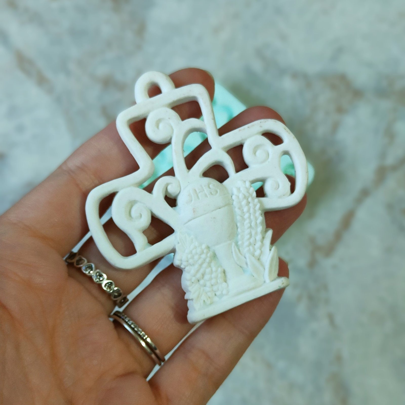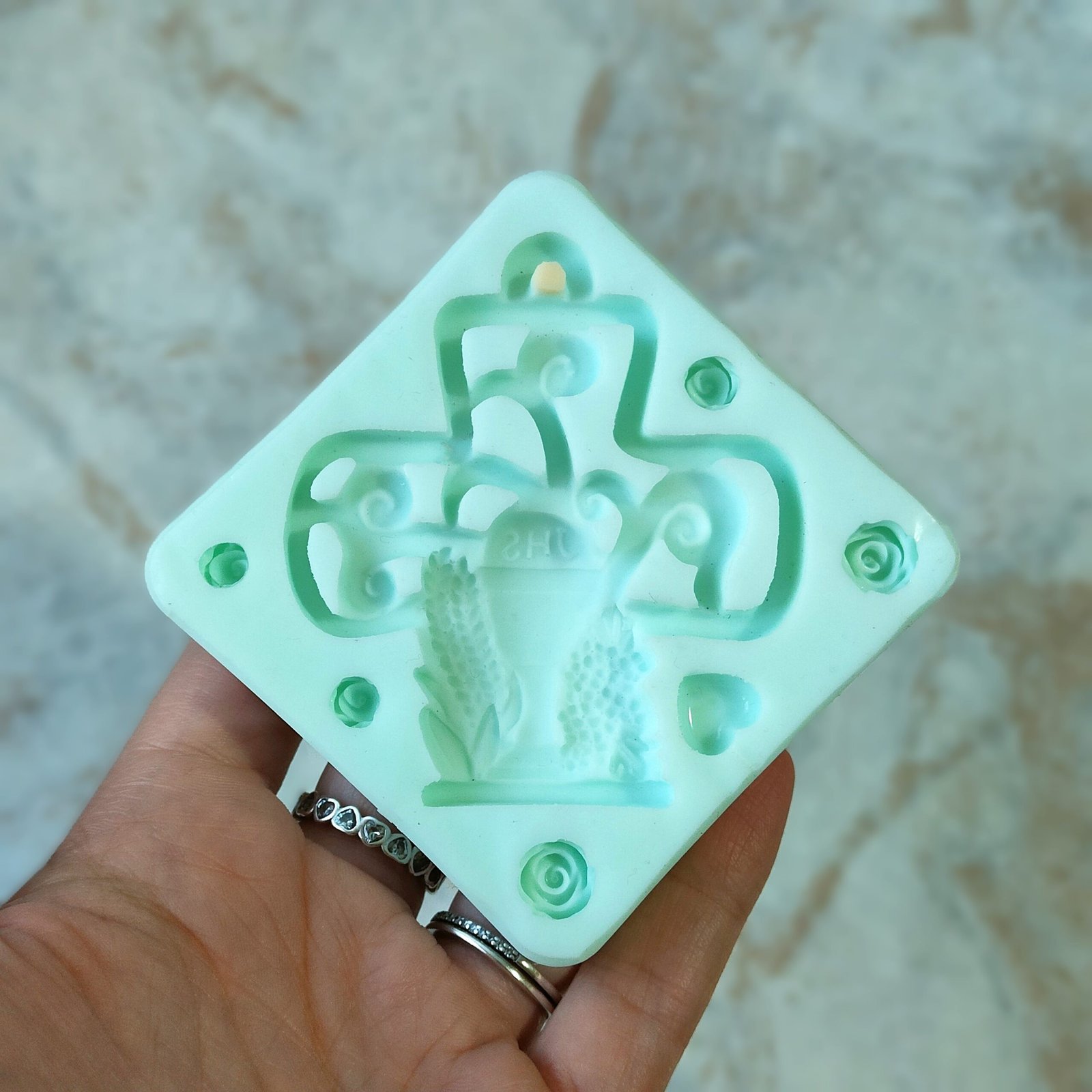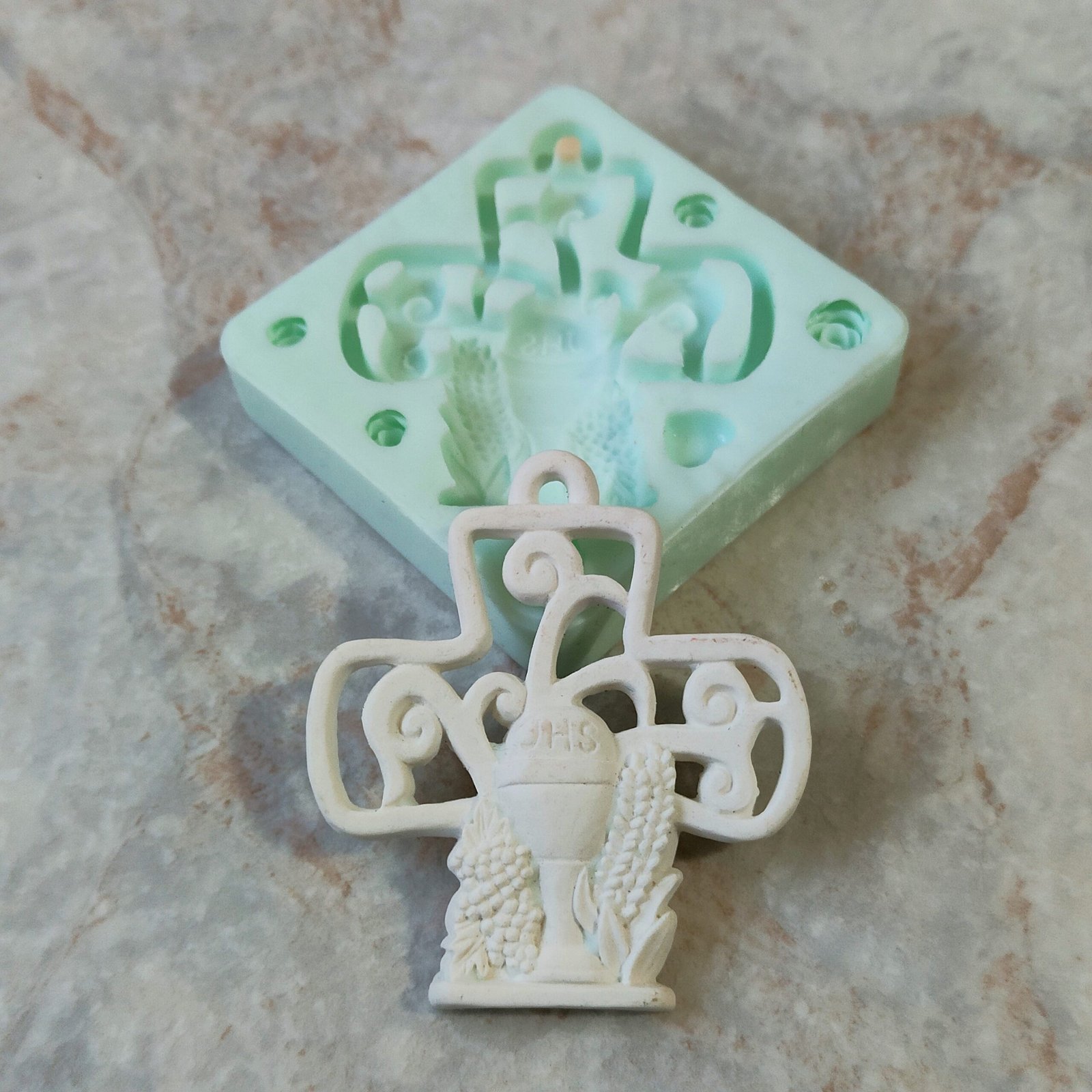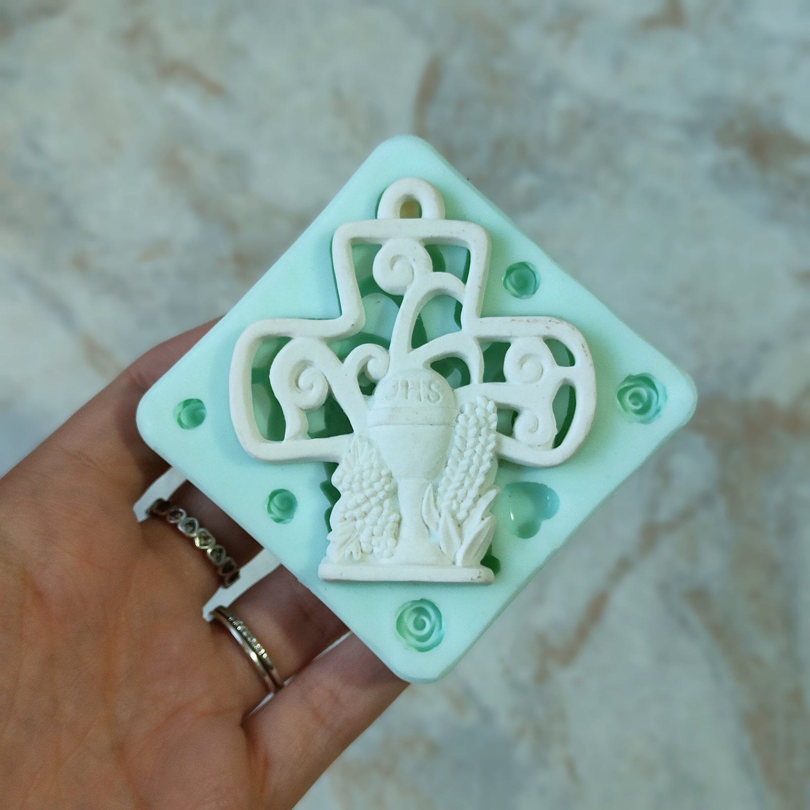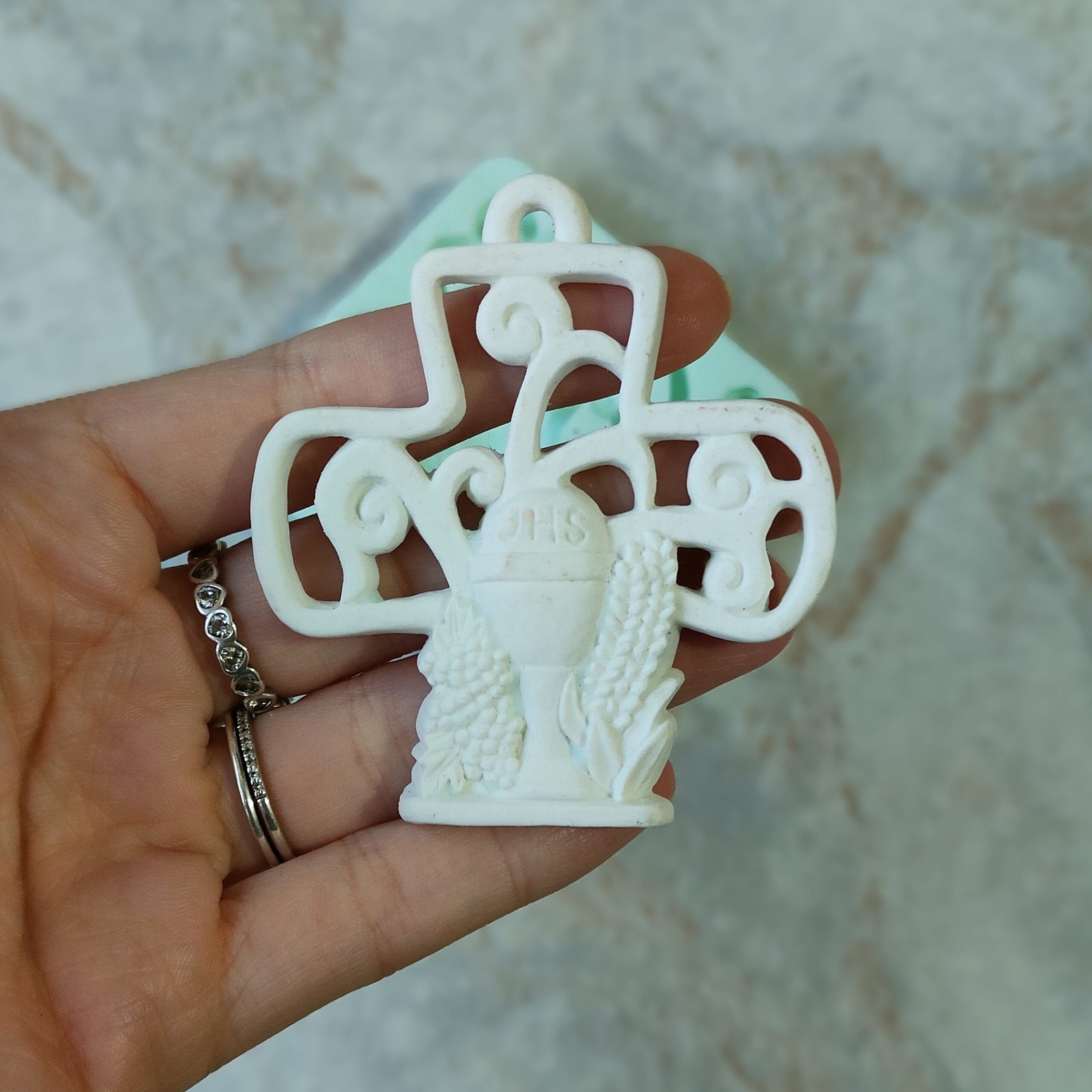 Stampo Croce con Calice Comunione in silicone 8 CM per creazioni in resina, gesso, sapone, cera e paste polimeriche, opaco e morbido realizzato in gomma siliconica da colata professionale e matrice in resina.