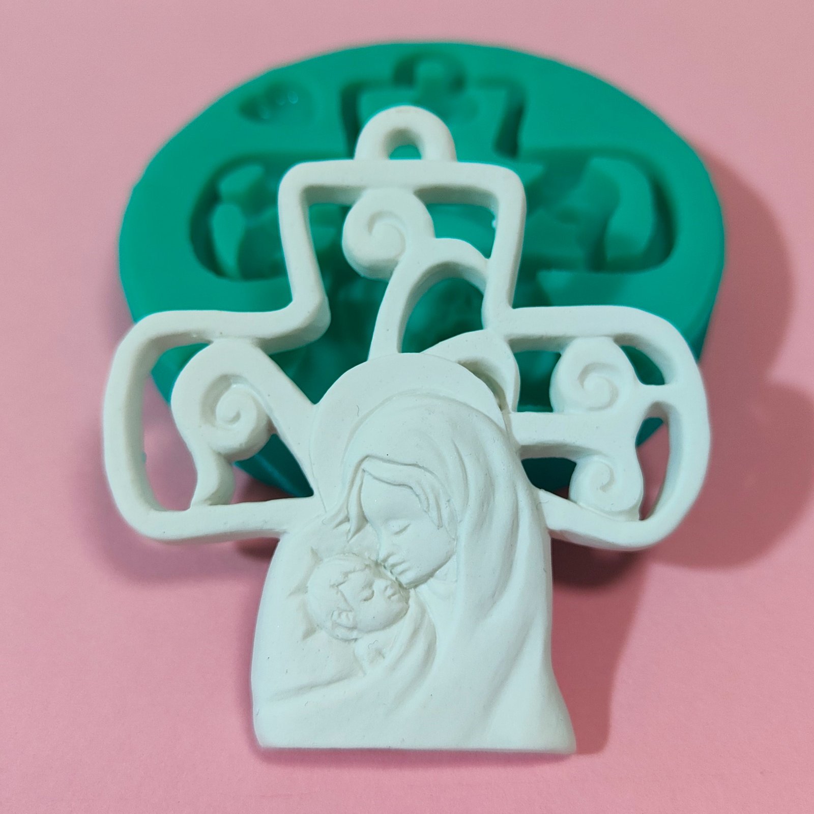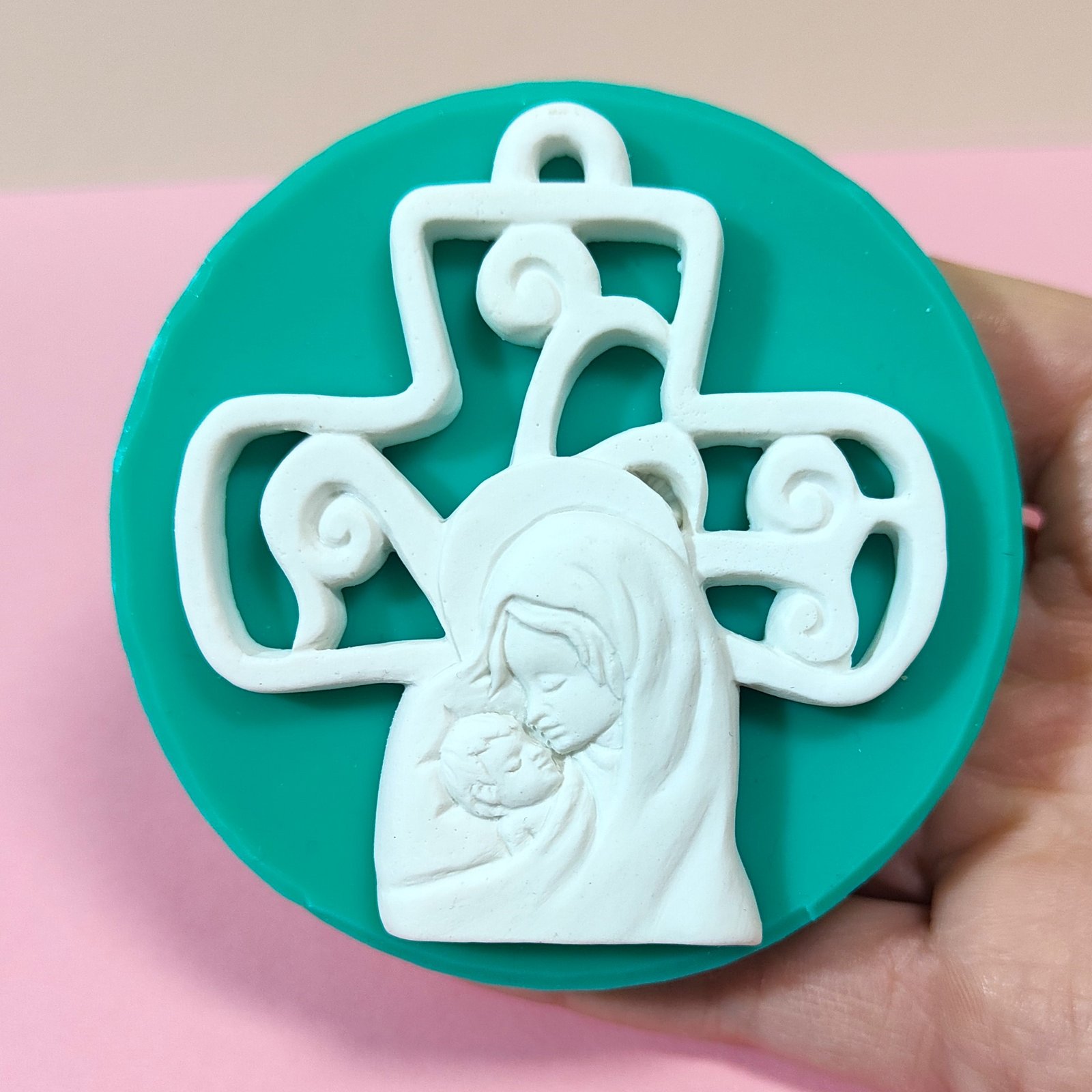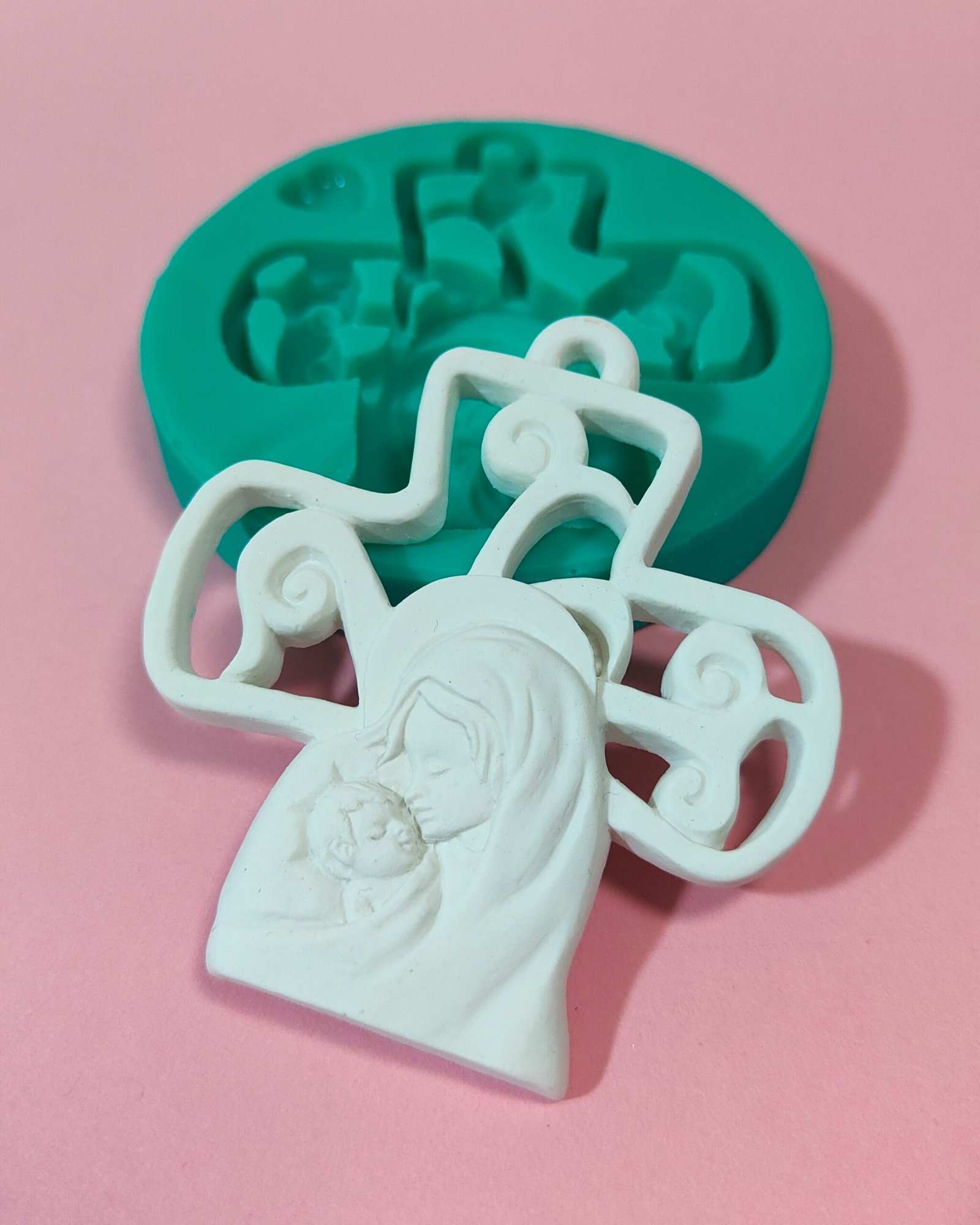 Stampo Croce Natività in silicone 7cm per creazioni in resina, gesso, sapone, cera e paste polimeriche, opaco e morbido realizzato in gomma siliconica da colata professionale e matrice in resina.