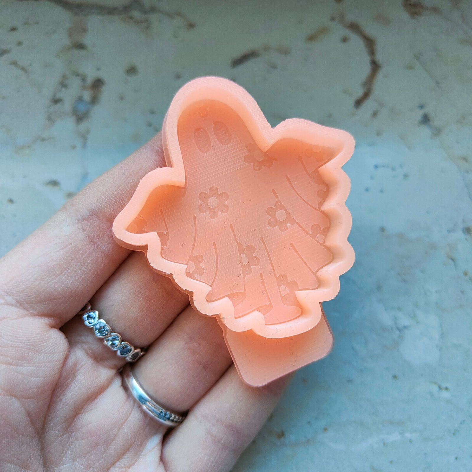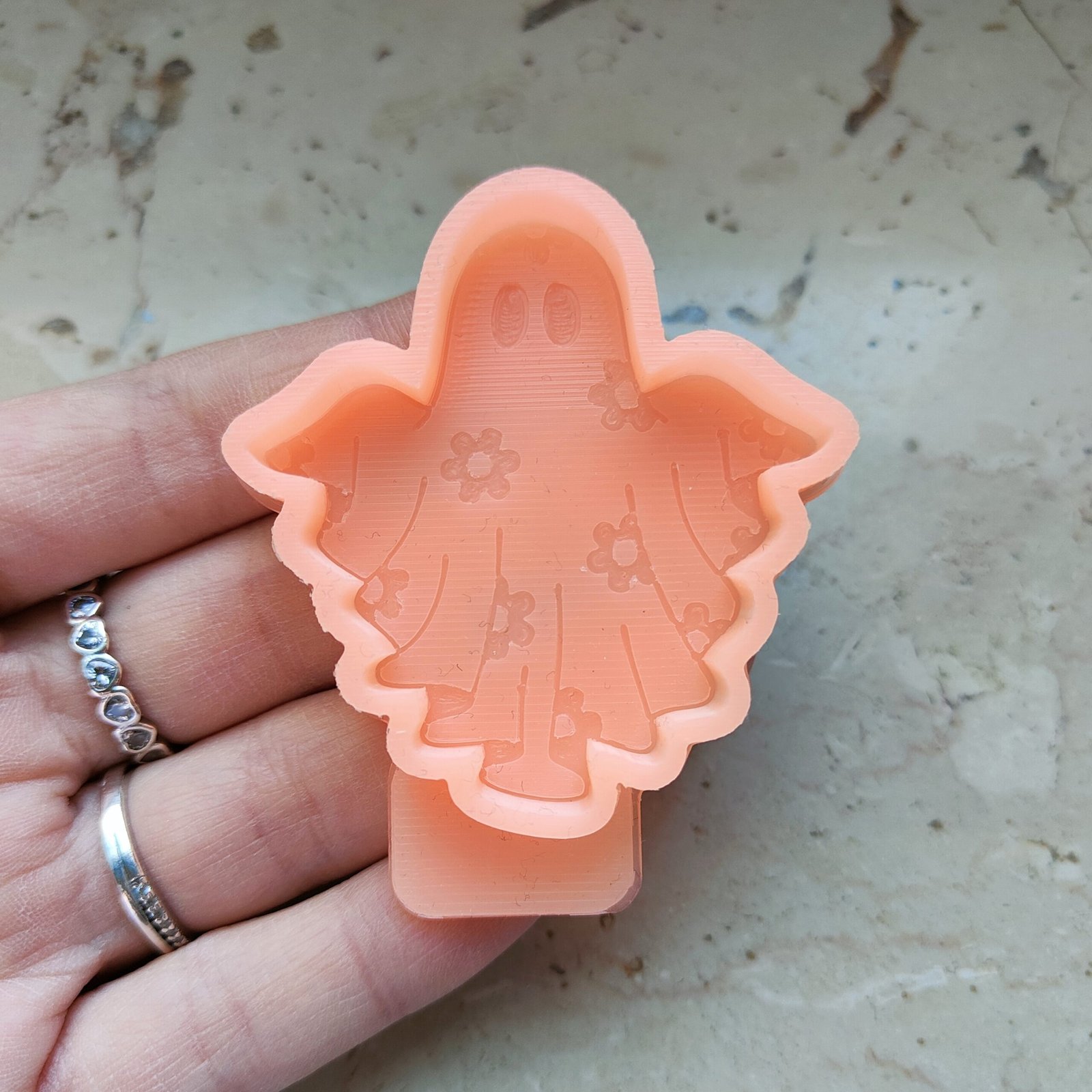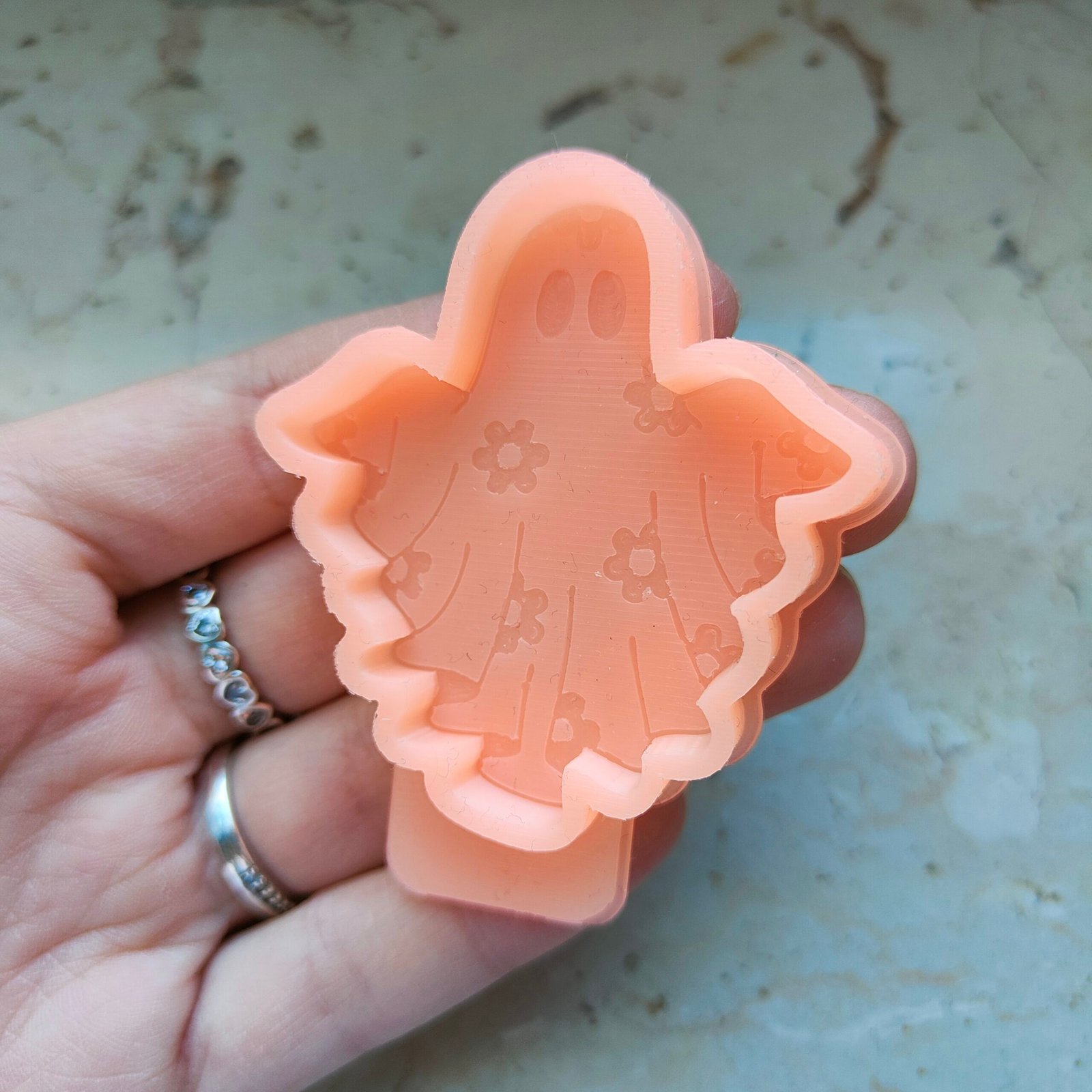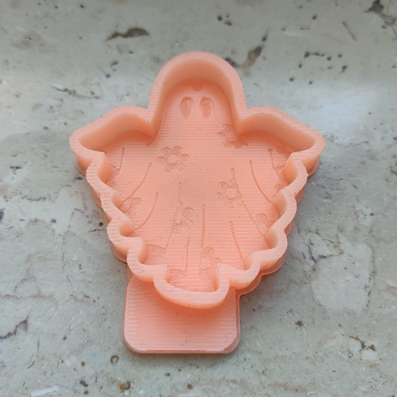 Stampo Fantasma con fiori 5cm in silicone per creazioni in resina, gesso, sapone, cera e paste polimeriche, opaco e morbido realizzato in gomma siliconica da colata professionale e matrice in STAMPA 3D.