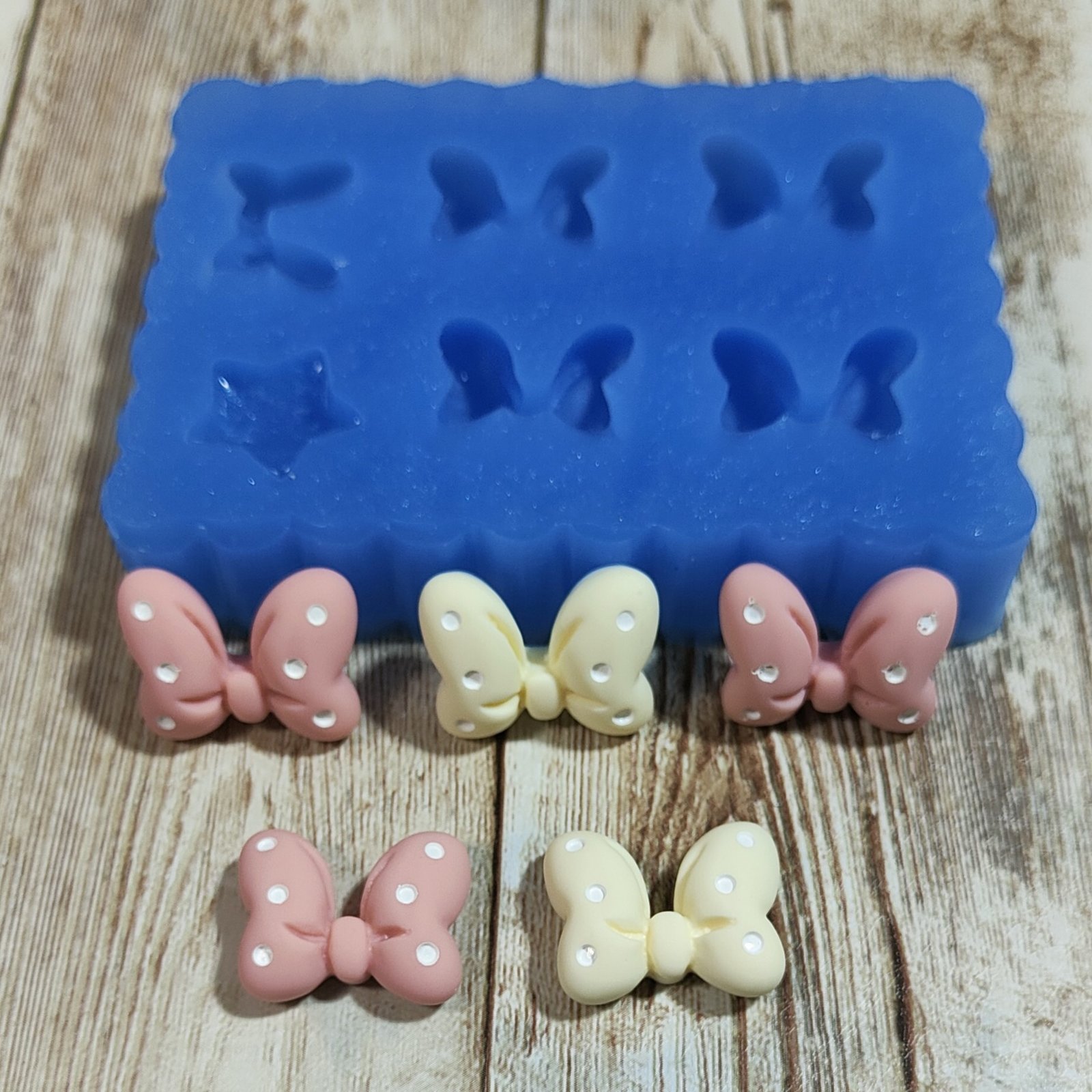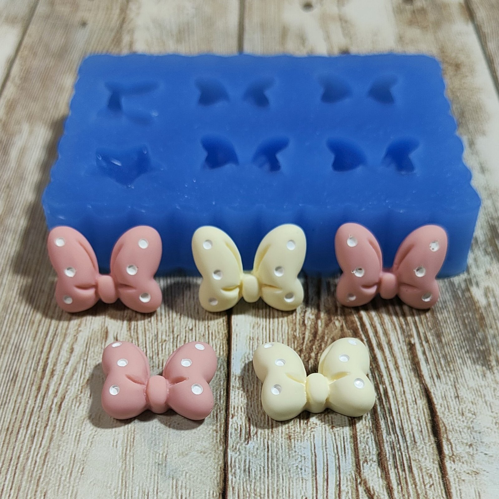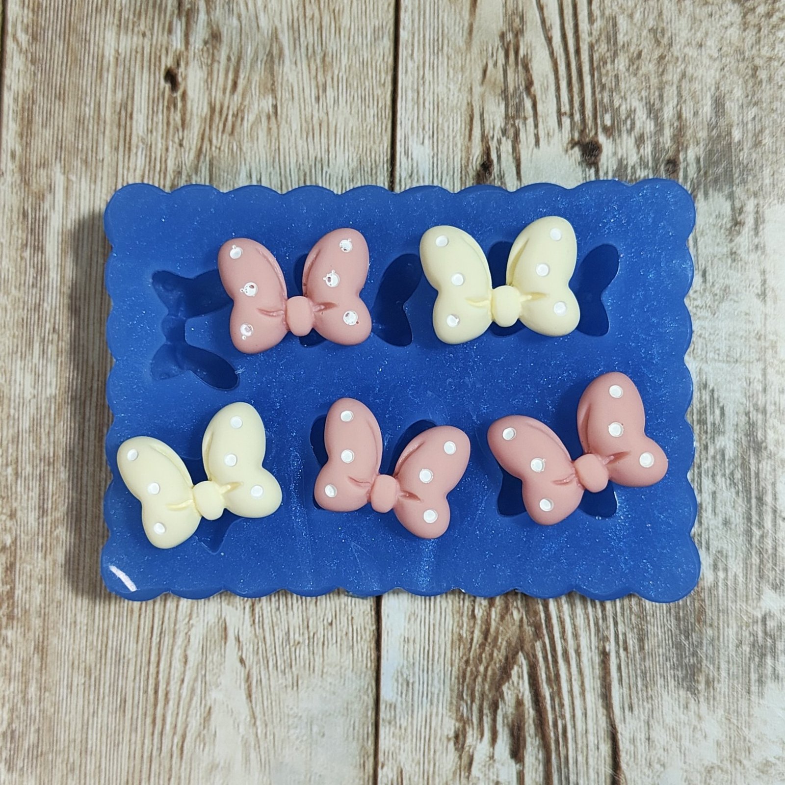 Stampo Fiocchetti 2cm 5pz in silicone per creazioni in resina, gesso, sapone, cera e paste polimeriche, oapco e morbido realizzato in gomma siliconica da colata professionale e matrice in resina.