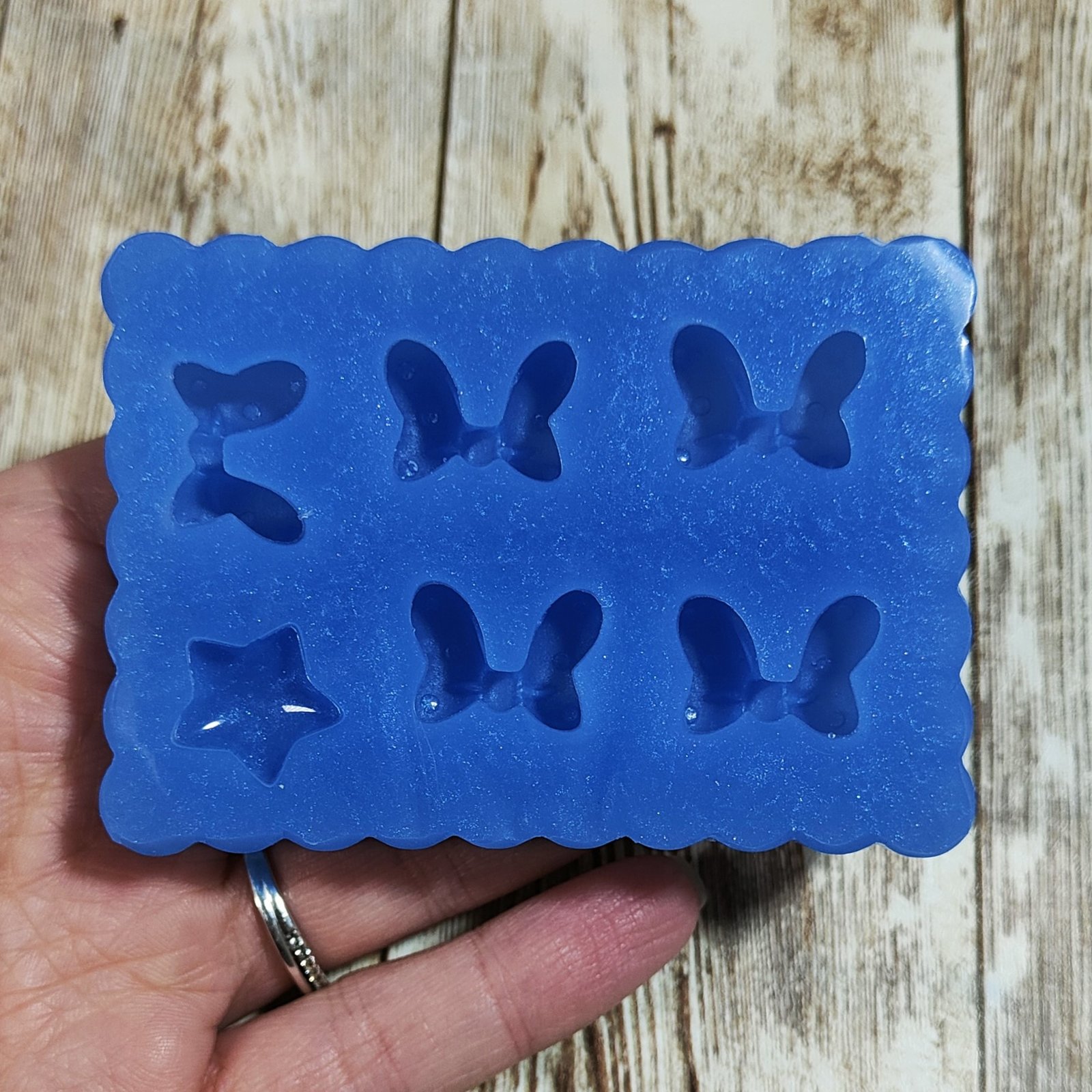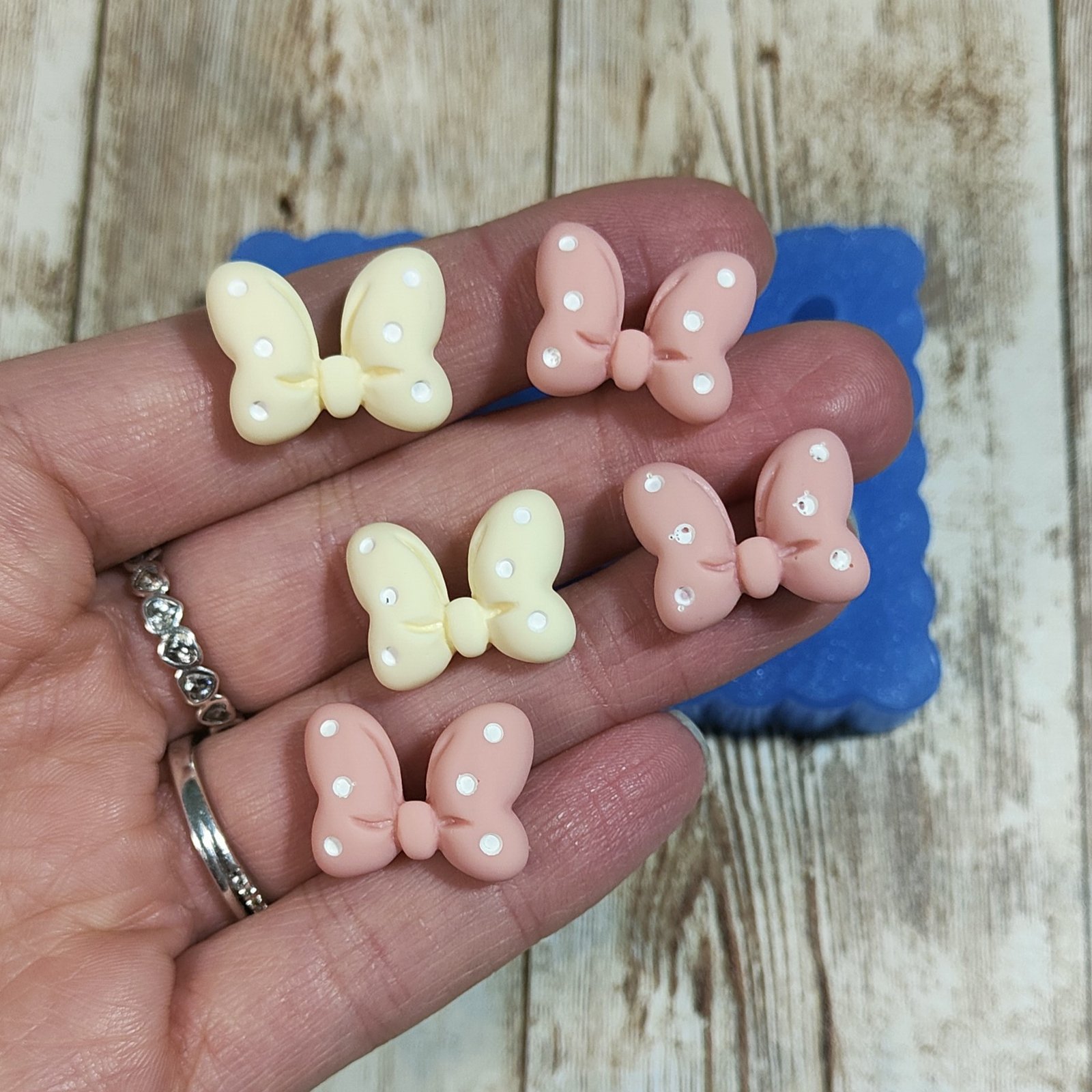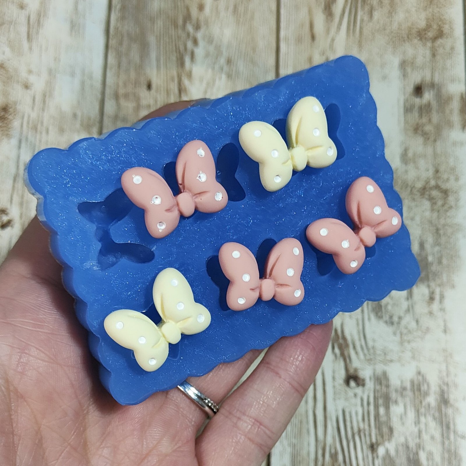Stampo Fiocchetti 2cm 5pz in silicone per creazioni in resina, gesso, sapone, cera e paste polimeriche, oapco e morbido realizzato in gomma siliconica da colata professionale e matrice in resina.
