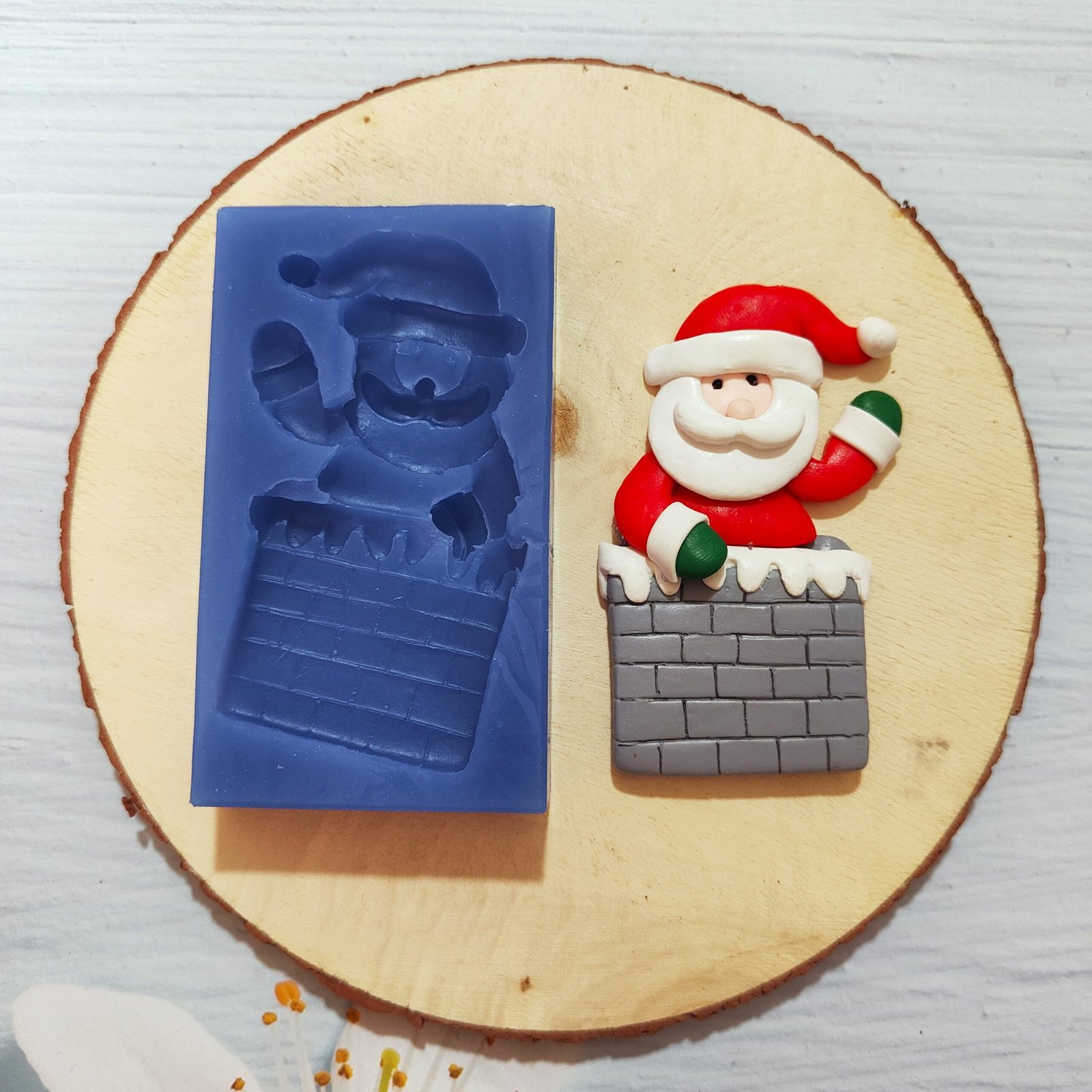 Stampo in silicone Babbo Natale su Camino per decorazioni e creazioni in resina, fimo e gesso, opaco e morbido realizzato in gomma siliconica da colata professionale e matrice in resina.