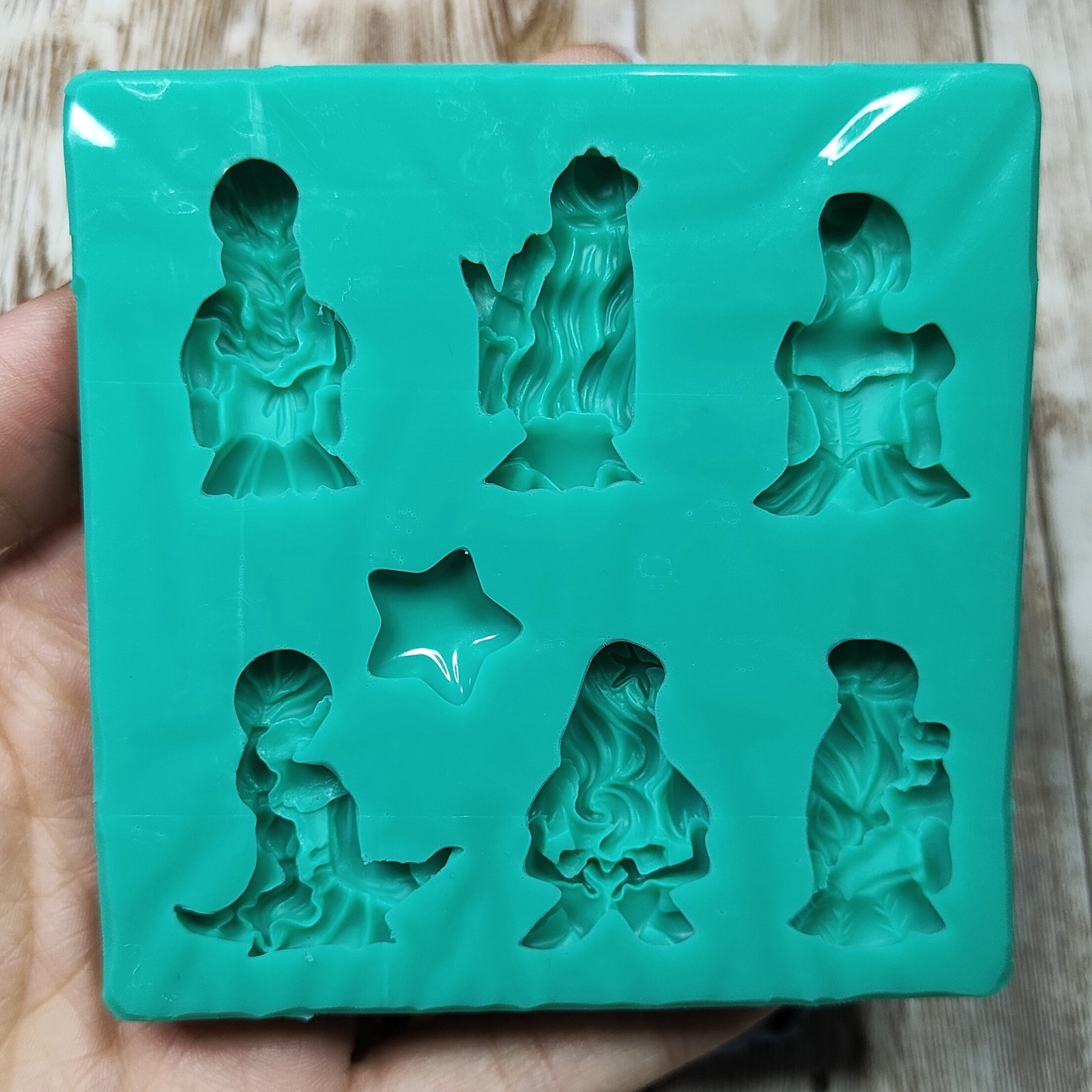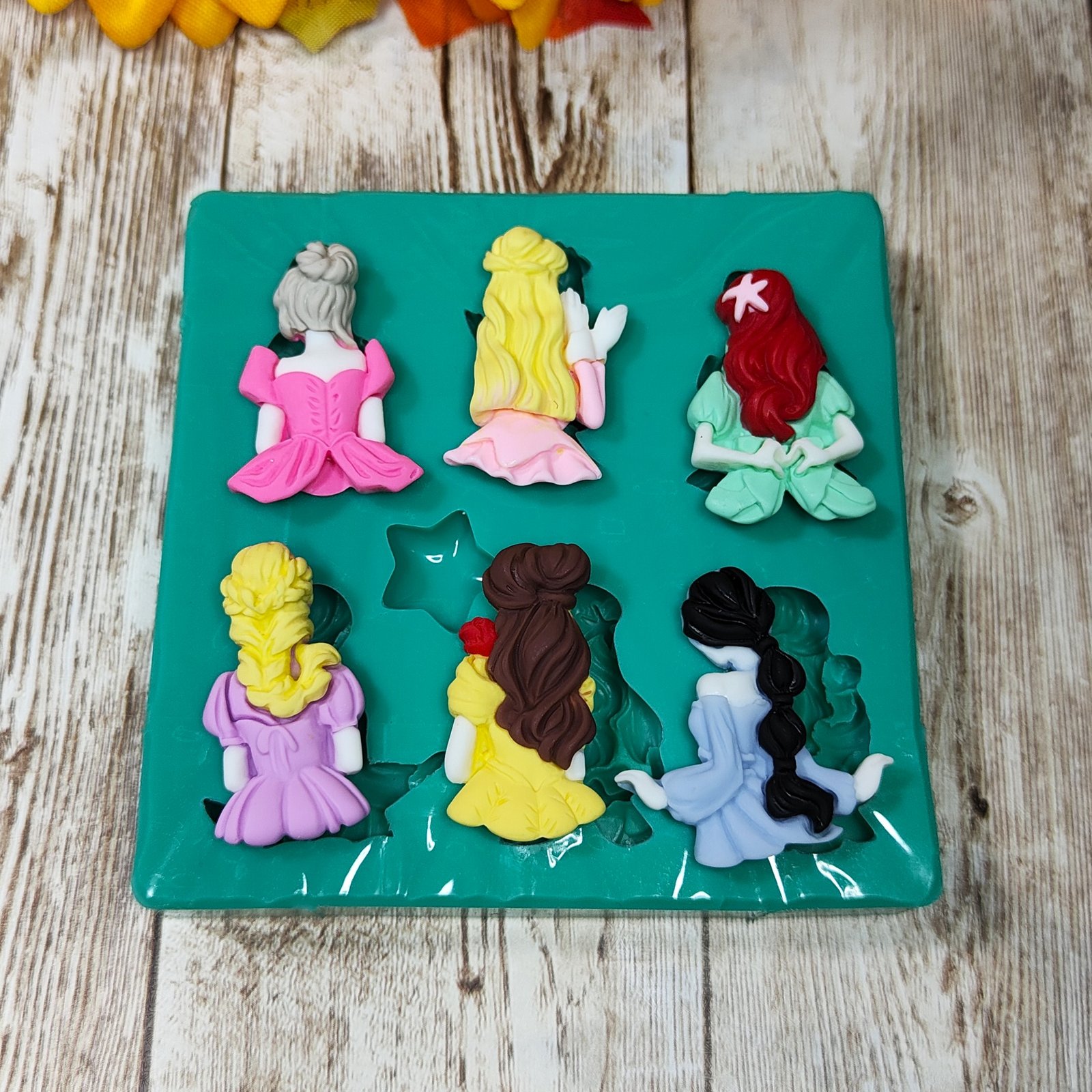 Stampo Principesse 3CM in silicone per creazioni in resina, gesso, paste polimeriche, sapone e cera, opaco e morbido realizzato in gomma siliconica da colata professionale e matrice in resina.