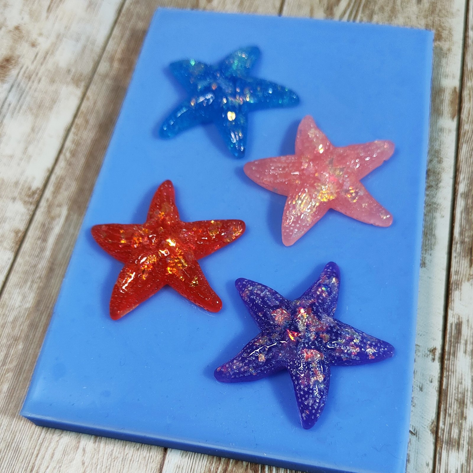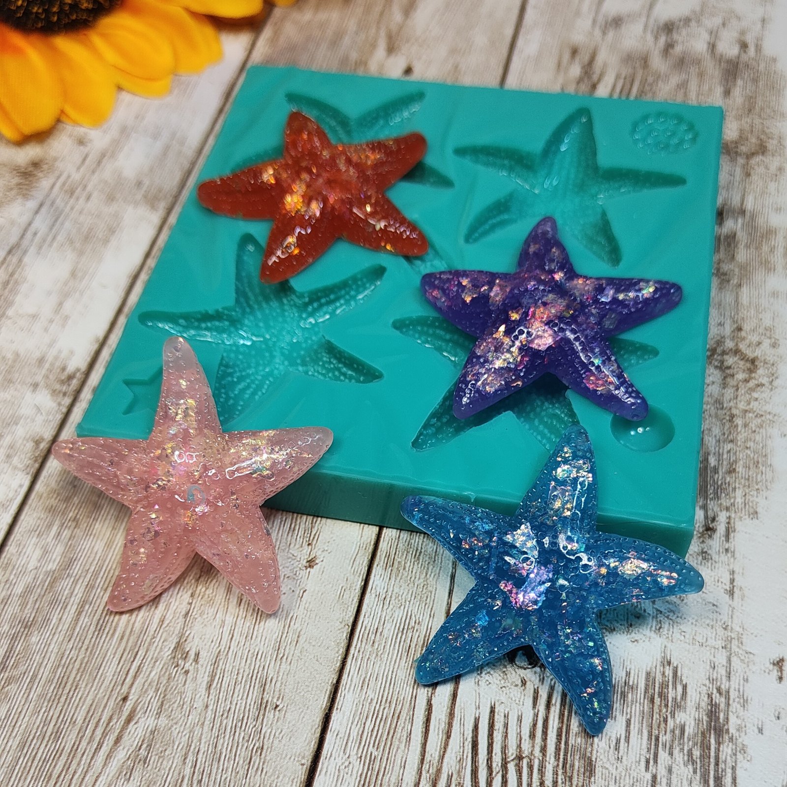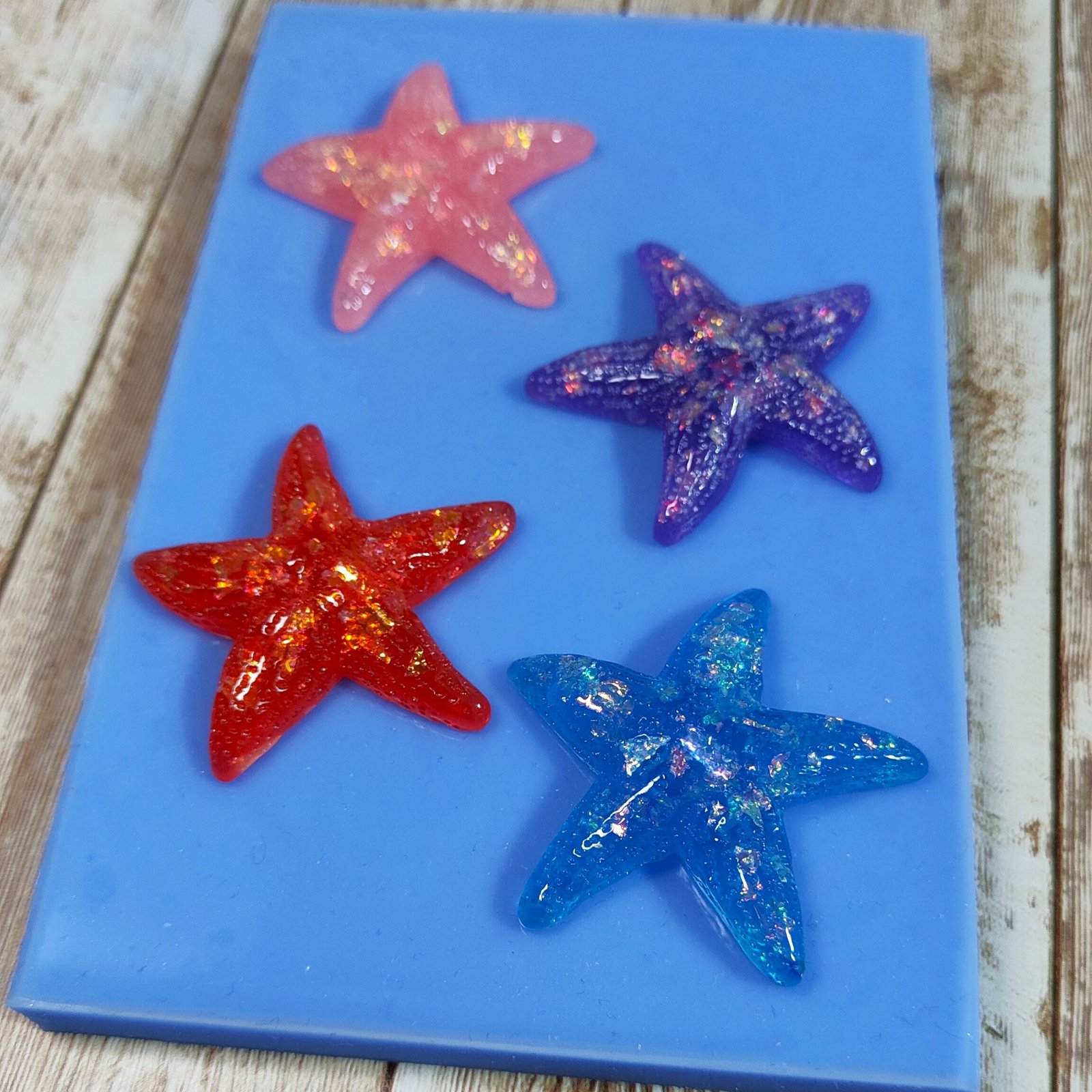 Stampo Stelle Marine 4pz 4,5 cm in silicone per creazioni in resina, gesso, sapone, cera e paste polimeriche, lucido e morbido realizzato in gomma siliconica da colata professionale e matrice in resina.