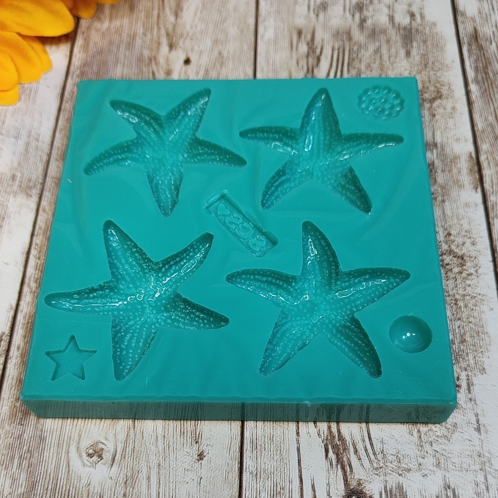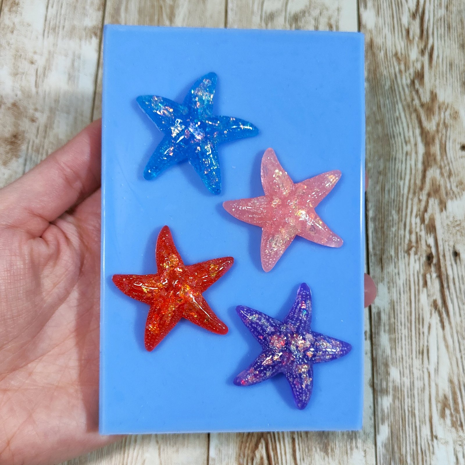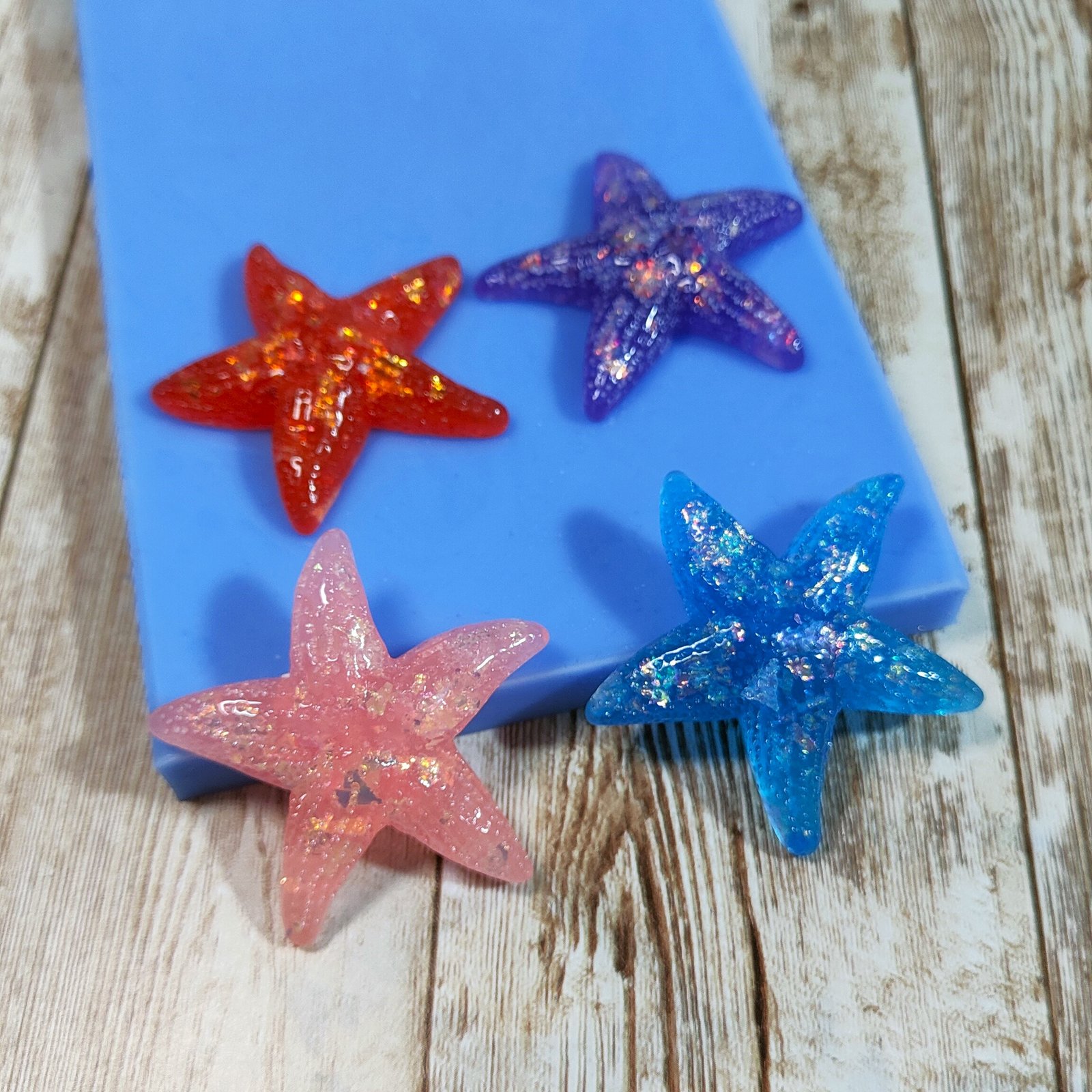 Stampo Stelle Marine 4pz 4,5 cm in silicone per creazioni in resina, gesso, sapone, cera e paste polimeriche, lucido e morbido realizzato in gomma siliconica da colata professionale e matrice in resina.